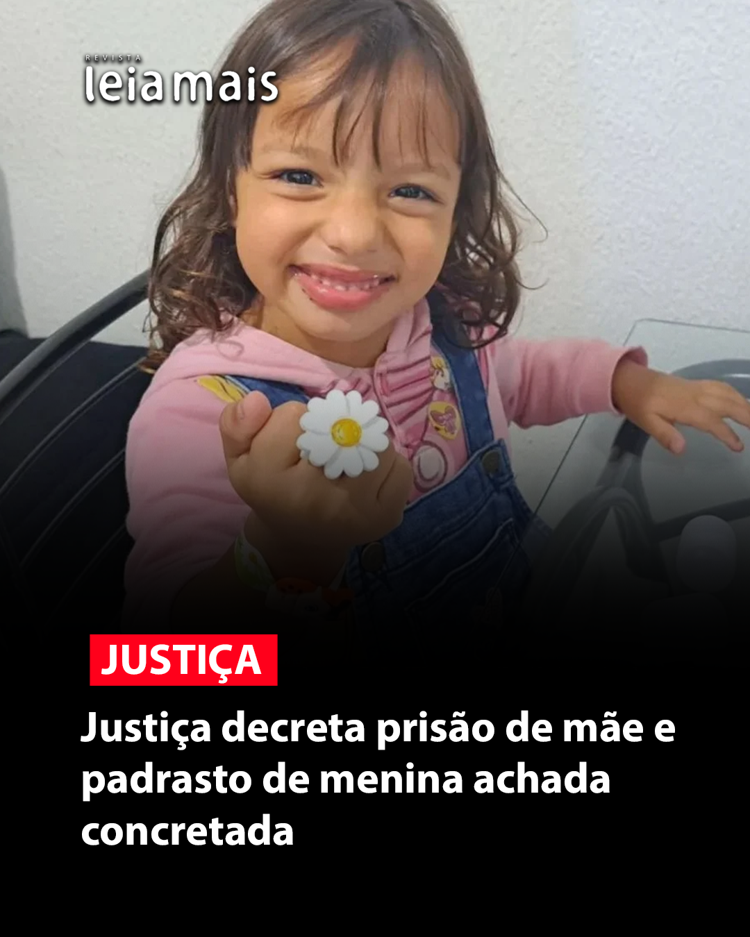 - 18 OutJustiça decreta prisão de mãe e padrasto de menina achada concretadaLEIA MAIS