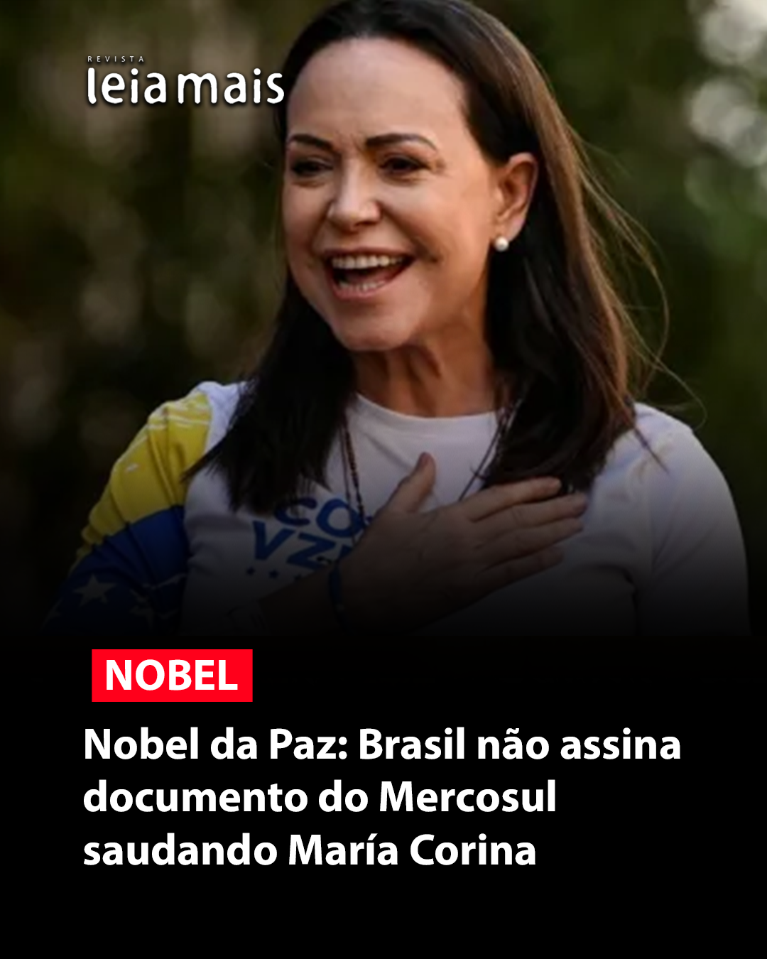 - 18 OutNobel da Paz: Brasil não assina documento do Mercosul saudando María CorinaLEIA MAIS