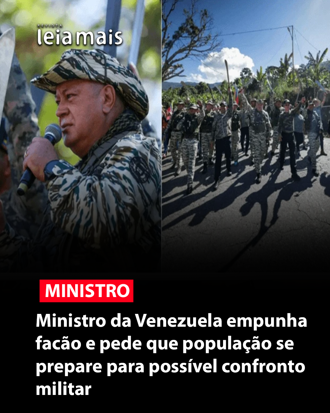 - 20 OutMinistro da Venezuela empunha facão e pede que população se prepare para possível confronto militarLEIA MAIS